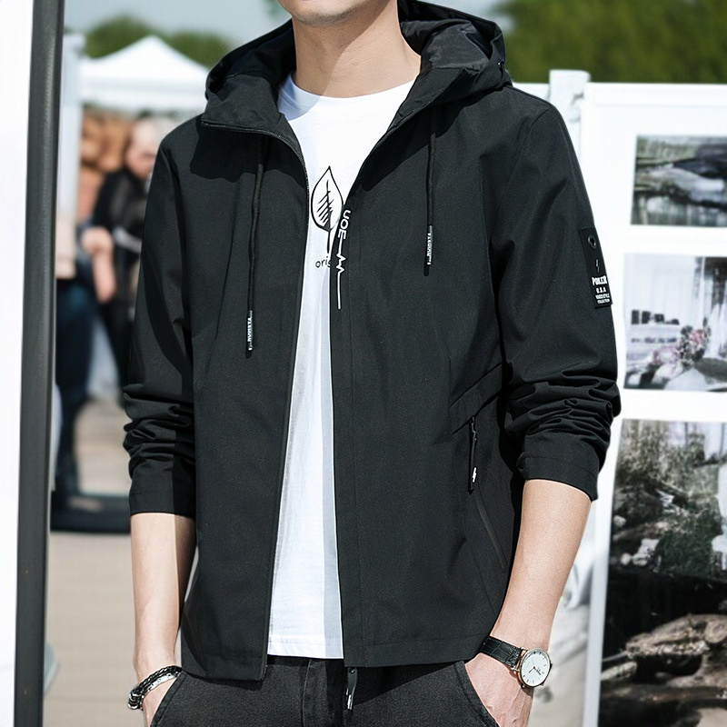 春と秋のジャケットメンズコートフード付き学生ユースカジュアルジャケット