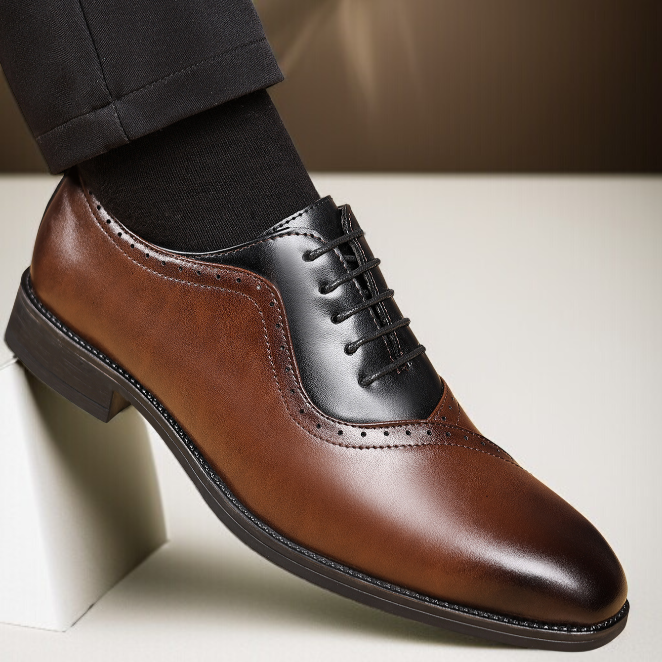 礼服用方头系带皮鞋の高級感ある擦色仕上げ